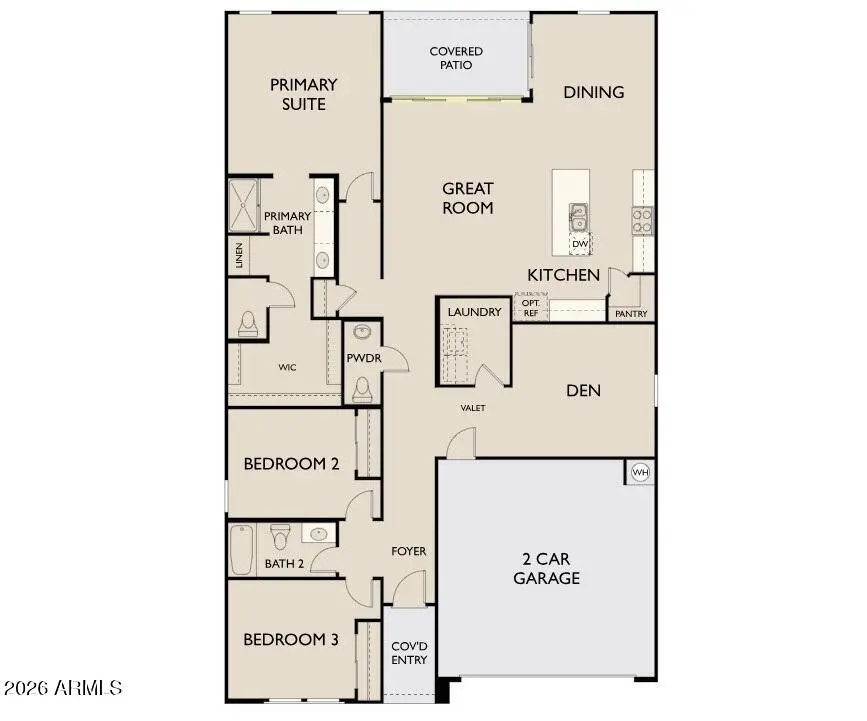 Welcome to the Larkspur Plan, in this thoughtfully designed 1,949 sq. ft. new build featuring 3 bedrooms, 2.5 bathrooms, and a versatile den--perfect for a home office or private retreat. This home showcases a beautiful craftsman exterior. The kitchen is the heart of the home, showcasing our designer-selected Roosevelt collection with 42'' rich espresso cabinetry, upgraded champagne bronze hardware, a stylish tile backsplash, and a large quartz island ideal for entertaining or casual meals. Stainless steel appliances, including the refrigerator, add both elegance and functionality. The open-concept layout connects seamlessly to the dining and living areas, creating an inviting space for everyday living. Elegant wood-look tile extends through the main areas, complemented by plush carpet
