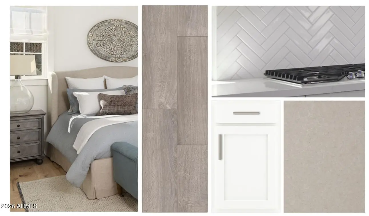 Step into the stunning Sunflower model, thoughtfully designed for versatility, style, and everyday comfort. This exceptional single-story home features a private Guest Suite with its own living area, bedroom, full bath, and flex space--ideal for multi-generational living, college students, long-term guests, or a private home office. With 4 spacious bedrooms, 3 full bathrooms, and a 2.5-car garage, this layout offers both functionality and flexibility for today's lifestyle. At the heart of the home is the chef-inspired kitchen, showcasing a large quartz-topped island with a farmhouse-style basin sink, elegant satin nickel hardware, upgraded 42'' white cabinetry, and a striking designer backsplash. Warm 8x36 plank tile flooring flows seamlessly through the main living areas, guiding you