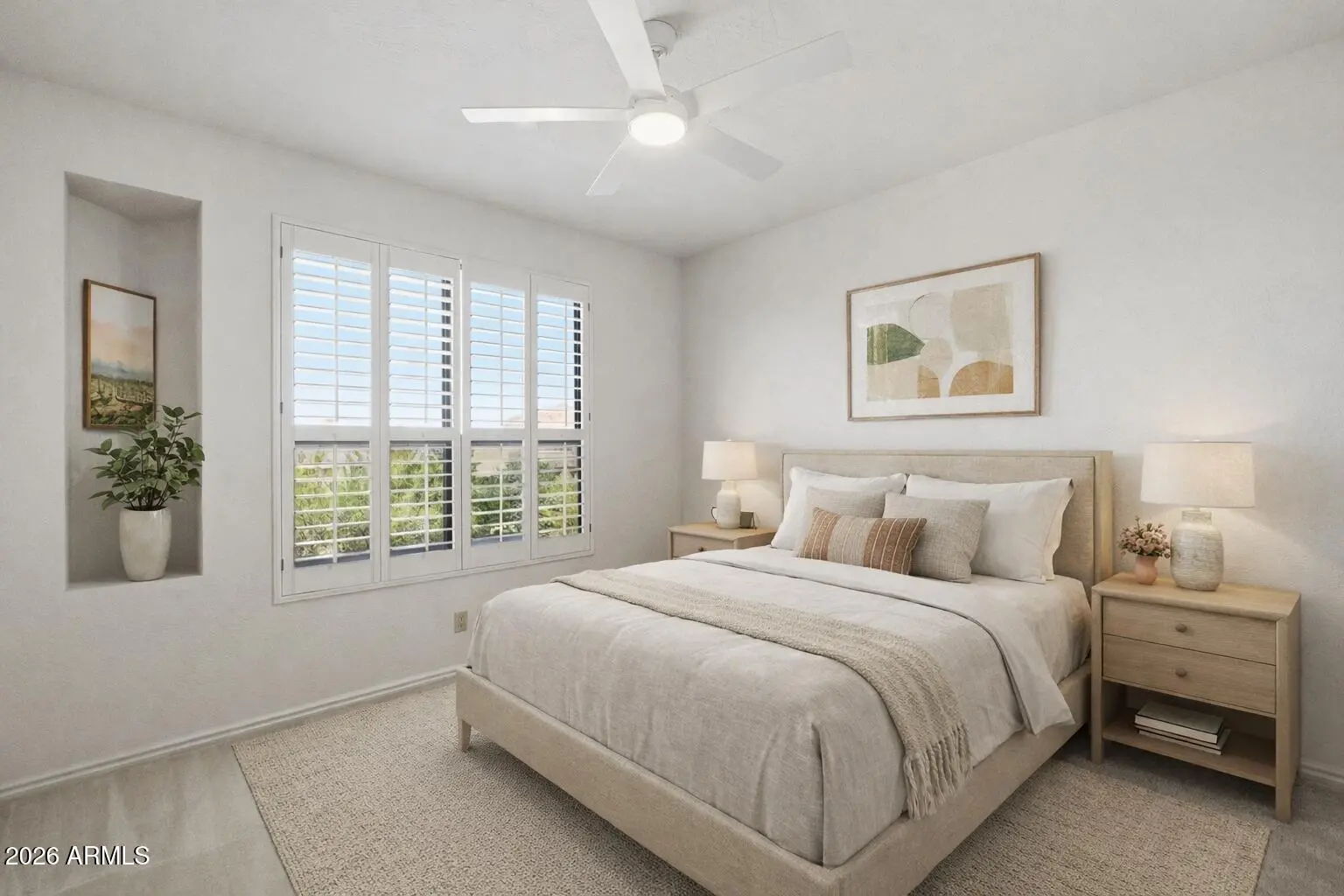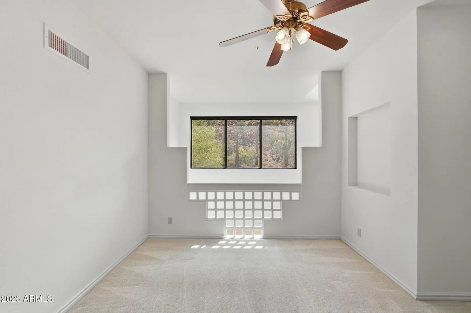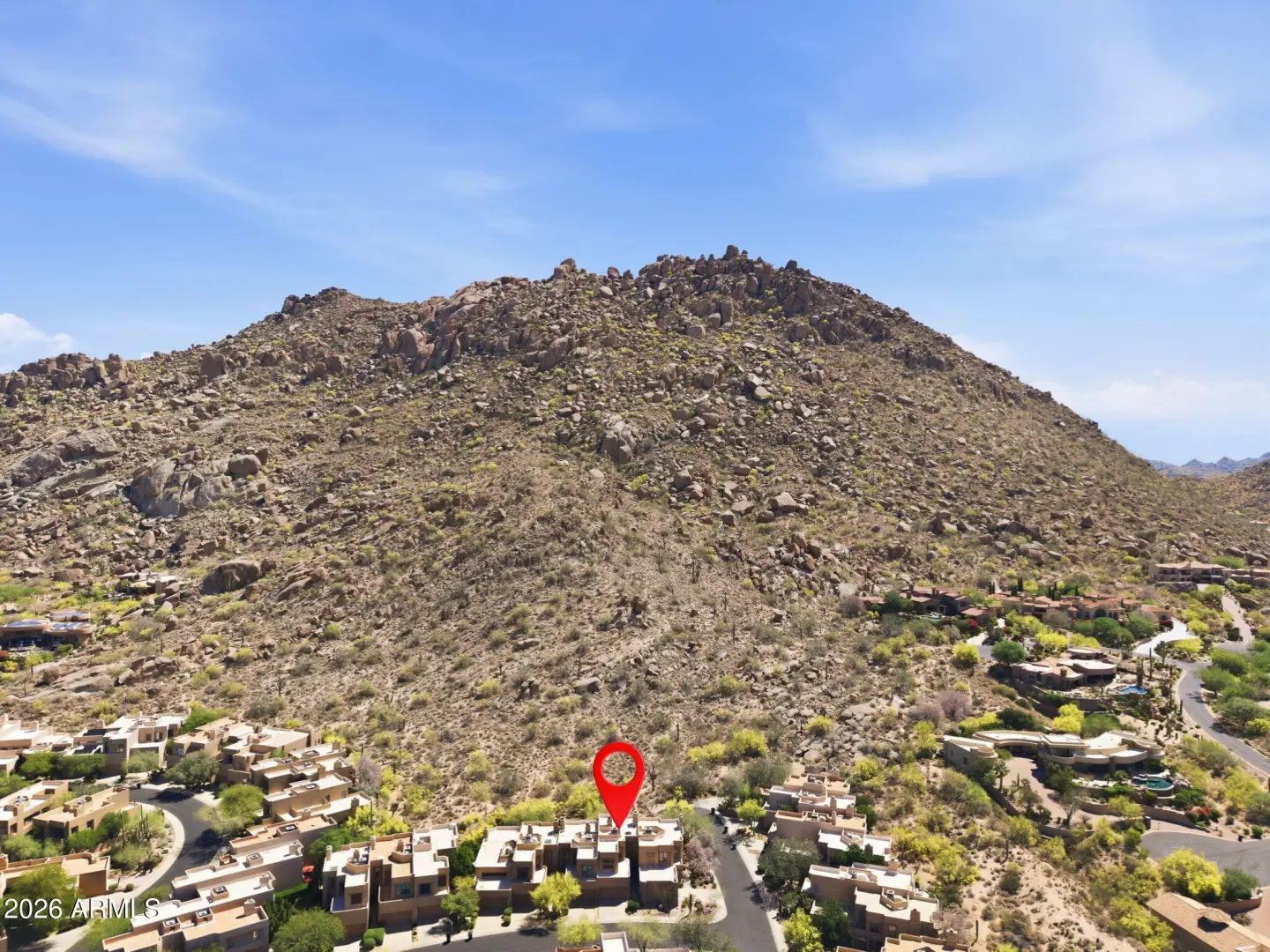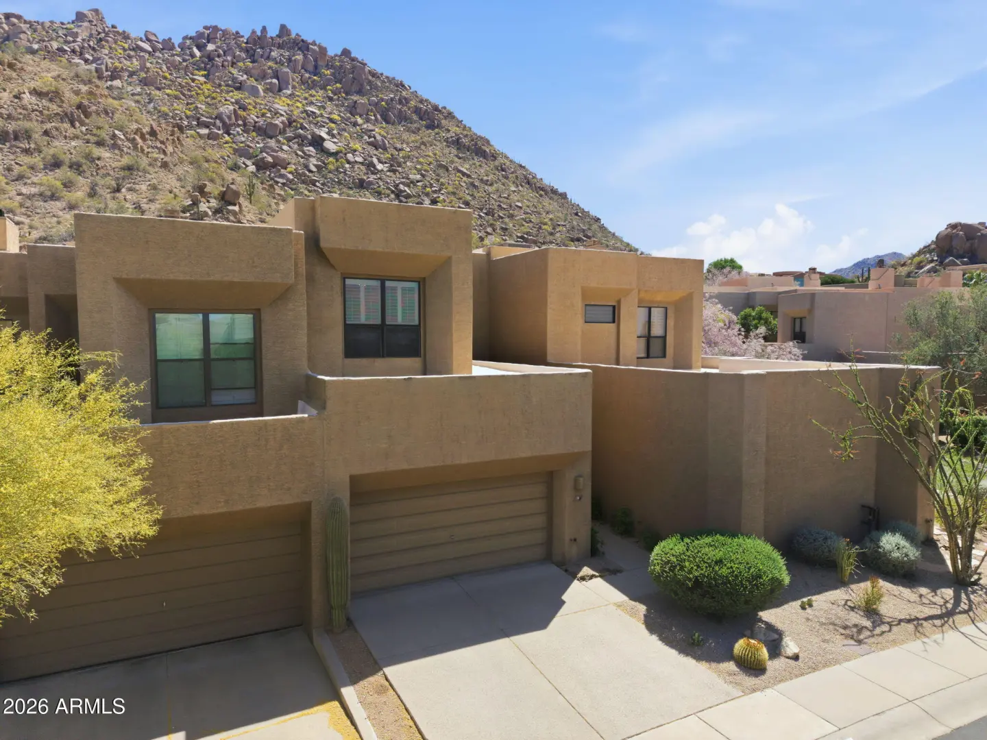 Tucked into the slope of Troon Mtn is this spacious S/W Contemporary 2Br & Den townhome in Skye Top. The Great Rm & Dining Rm open to the patio where the only sounds you will heard are birds & quail. Located in the guard gated community of Windy Walk, you will experience the comradery of passing friends out walking, or enjoying the community pool & club house. The upstairs Primary Suite & balcony looks to the majestic mountain where the evening sun paints everything in hues of pinks & purple. The Guest Br & the Loft provide for family time. The home is in excellent condition but priced to allow someone to enhance it with their personal touches. A fireplace in the Great Rm and one in the Owner's Suite add another layer of charm. A generous 2 car garage enters to the eat-in Kitchen.