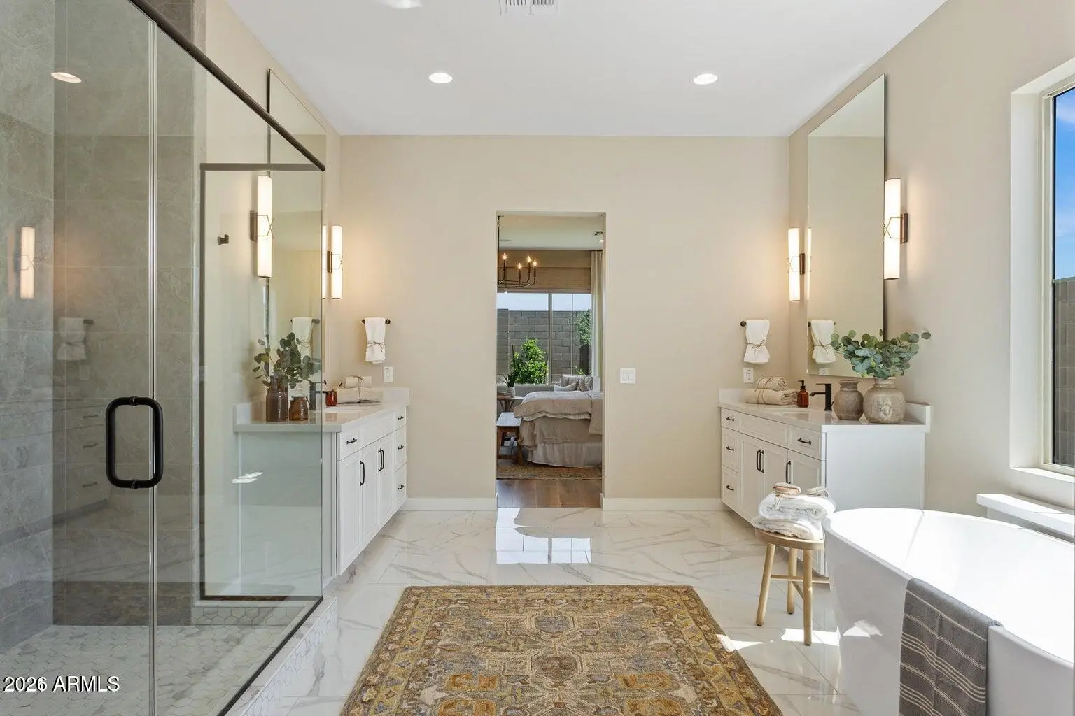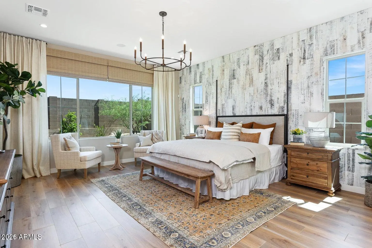 Discover Redefined Desert Living in this FORMER MODEL Home showcasing a Fresh, Soft Contemporary style in an Exclusive Gated Community that welcomes Horses and Equestrian lifestyles. Perfectly blending Elegance and Comfort, this beautifully designed residence features a soft, bright & light color palette that fills the home with Warmth and Natural Light. Inside, you'll find 3 spacious bedrooms plus a dedicated Executive Home Office, ideal for working from home or creating a quiet retreat. Rich wood flooring and thoughtfully placed stone accents throughout, add texture, character, and timeless appeal. Every space reflects the elevated details and finishes expected from a Former Model Home.