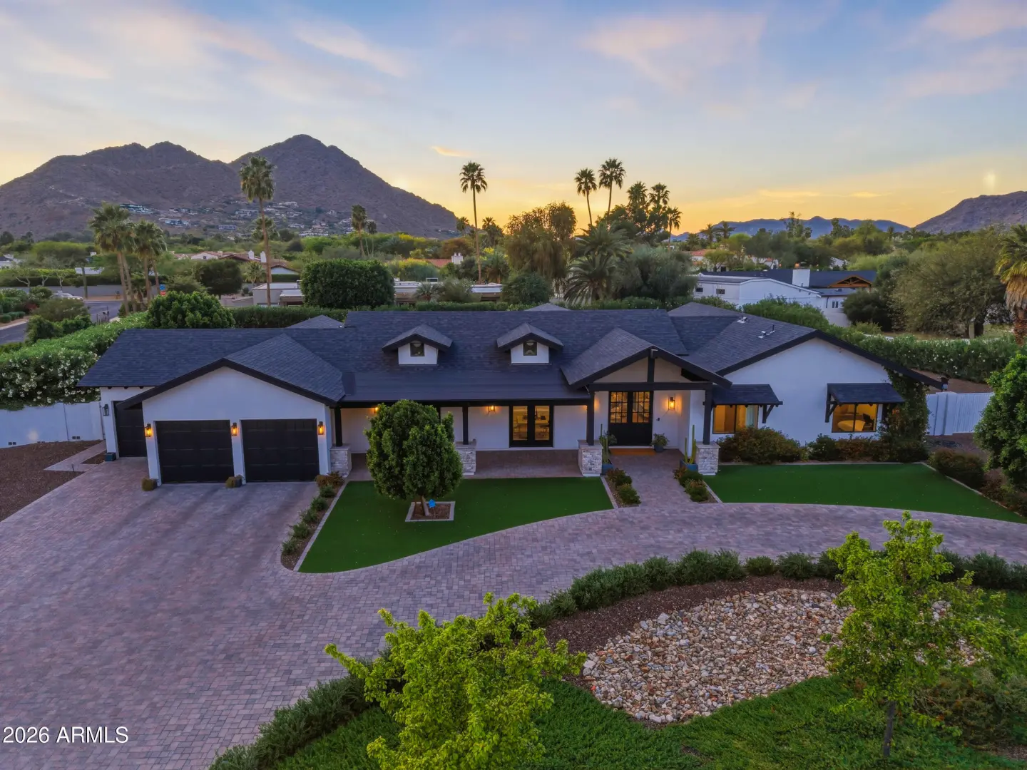 Modern luxury meets prime location in Paradise Valley! Perfectly positioned near Old Town Scottsdale, this stunning 2021 built home delivers style, space, and breathtaking Camelback Mountain views. Featuring 4 spacious bedrooms, a dedicated office, and 3.5 beautifully appointed bathrooms, this home is designed for both comfort and sophistication. An open floor plan with soaring 12' vaulted ceilings creates a great room, kitchen, and dining room to impress, while the 3-car garage and lush, manicured landscaping complete the package. The .8 acre lot includes ample room for a future casita or addition from 500-2,000 additional square feet. Seller can convey recent plans for a 1,100 SF casita A rare opportunity to own in one of PV's most sought-after locations! Buyer to verify all details.