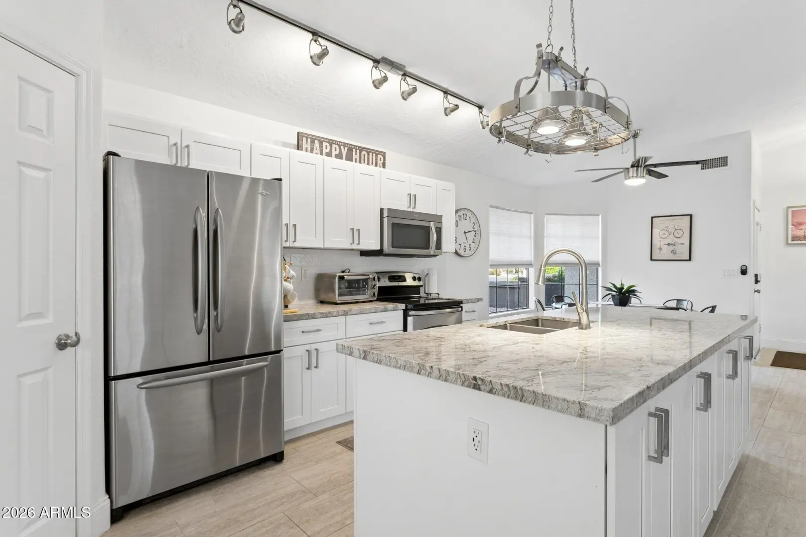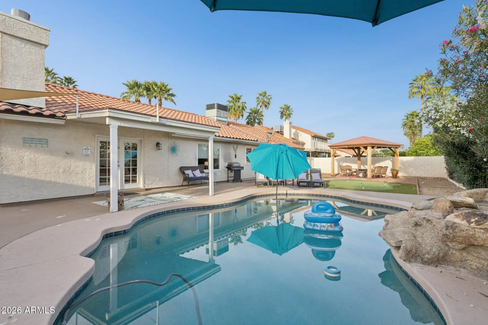 Welcome to your private Scottsdale retreat, ideally located near Kierland and Scottsdale Quarter. This thoughtfully designed home offers an open, light-filled layout with elevated finishes throughout. The chef's kitchen features quartzite countertops, stainless steel appliances, and generous prep space, flowing seamlessly into the main living areas. Step outside to a resort-style backyard with a sparkling pool, covered patio, and multiple lounge areas, perfect for relaxing or entertaining. Well-appointed bedrooms include a spacious primary suite, creating a comfortable, private escape. With flexible living space and close proximity to golf, dining, and shopping, this home delivers quintessential Arizona indoor/outdoor living.